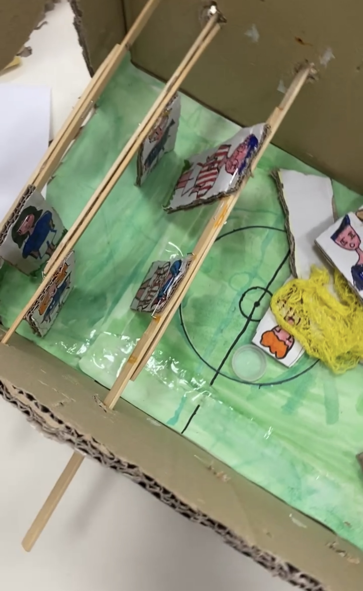 In un intervallo non sapevamo cosa fare e ci annoiavamo così ci è venuta l’idea: di costruire un calcetto di cartone, ci abbiamo messo tanto tempo con l’aiuto di alcune nostre compagne :